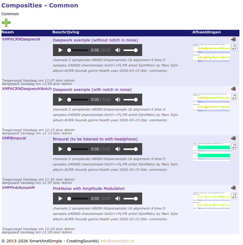 Om composities met geluid te maken biedt dit hulpmiddel de onderdelen;