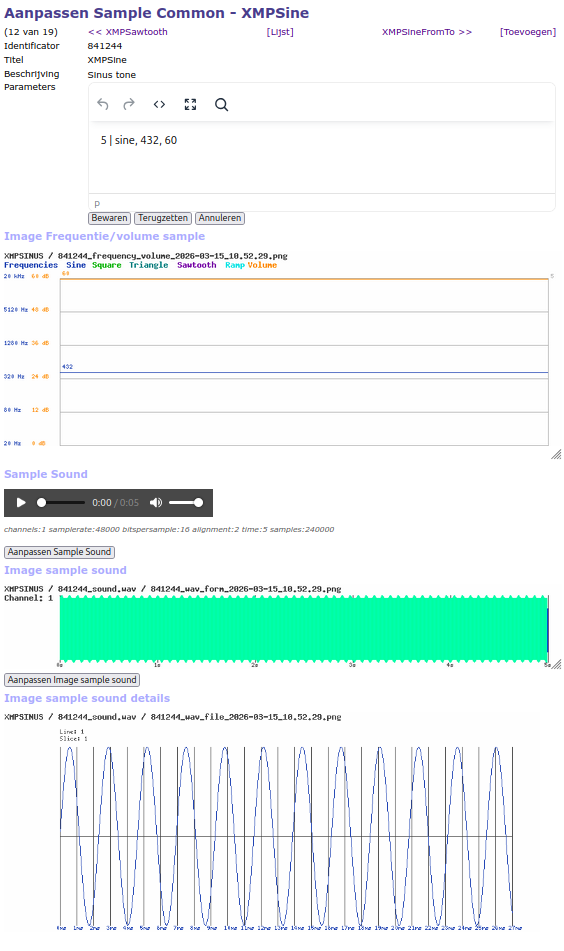 Een frequentie kan een getal zijn (5-20000) of een bekende frequentie. Op de pagina Frequenties kunnen specifieke frequenties worden bijgehouden. Als een frequentie uit een frequentie tabe wordt gebruikt dient het formaat te zijn;